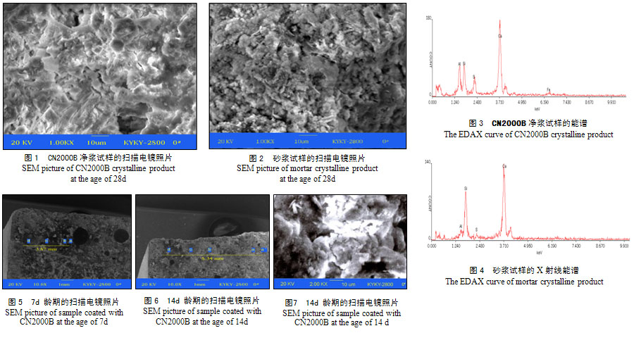 該防水材料為水泥基,能很好地同混凝土粘結為一體,而且其中含有的一些可以促使硅酸鹽晶格發生變化并重新結晶的活性物質,可以對混凝土表層滲透,不僅提高防水層對主體的粘結力,而且提高了主體結構的防滲能力。由于滲透結晶作用,當混凝土內部產生微小裂隙時,在活性物質的催化作用下,硅酸鹽、鋁酸鹽及游離氧化鈣與水發生反應,沿裂隙生成新的結晶,堵塞水的通道,起到防水作用。